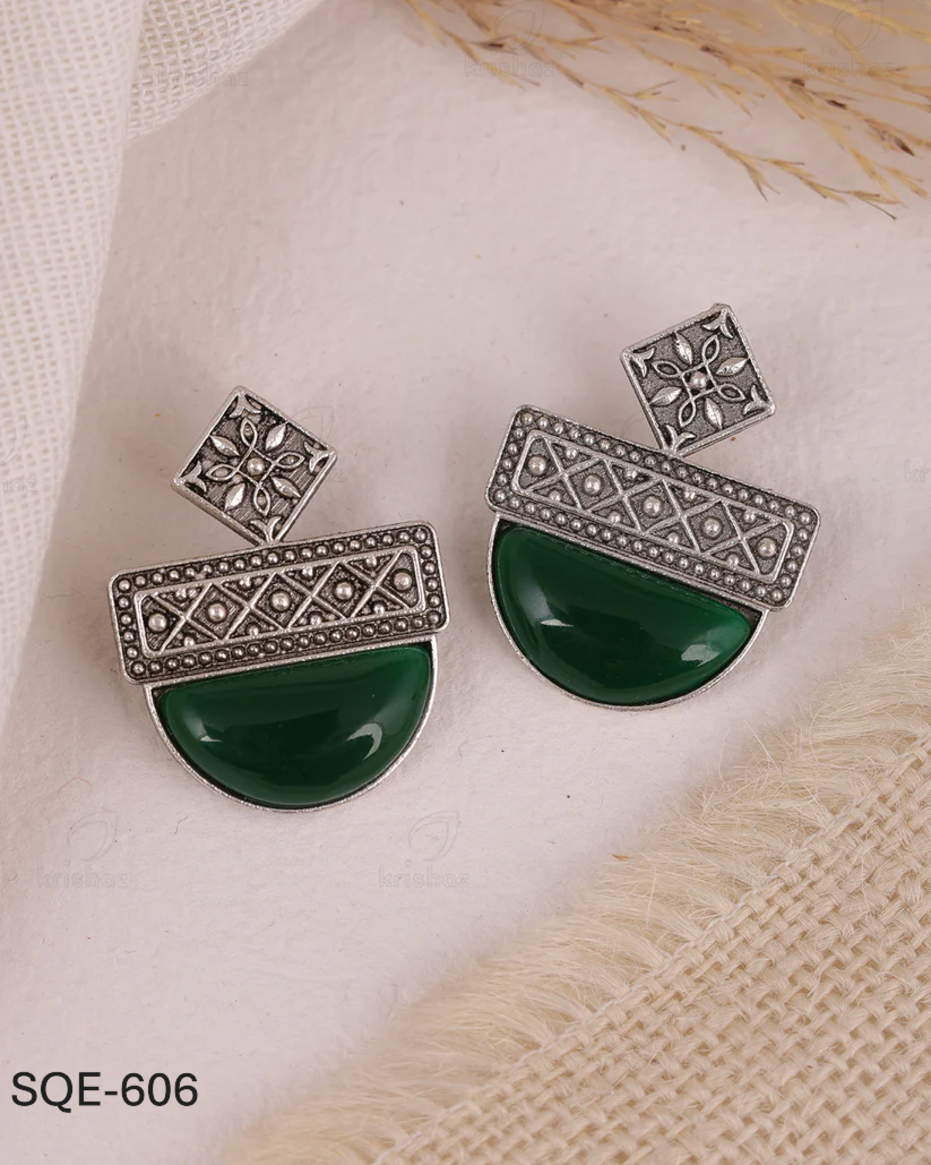 The Deepika Stud Earrings offer a traditional and pretty aesthetic, with an ethnic look that is perfect for any occasion. Made with silver oxidized material, these earrings are both stylish and durable. Enhance your wardrobe with these elegant and timeless accessories.